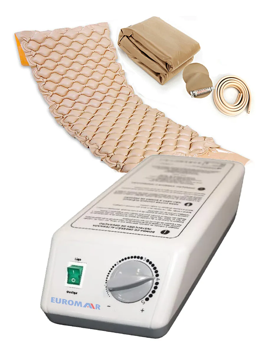 El Colchón Antiescaras EUROMAR es la solución ideal para el cuidado de personas encamadas por largos periodos, destacándose por su diseño avanzado de circulación de aire alternante que reduce significativamente la presión en áreas sensibles. A diferencia de otros colchones en el mercado, cuenta con un motor de trabajo continuo 24/7 y un sistema de ajuste de presión personalizable, lo cual proporciona un confort superior y ayuda a prevenir la aparición de escaras de manera más efectiva. Diseñado específicamente para prevenir la aparición de escaras y llagas, este colchón distribuye el peso de manera uniforme, aliviando la presión en áreas sensibles y mejorando la circulación sanguínea.