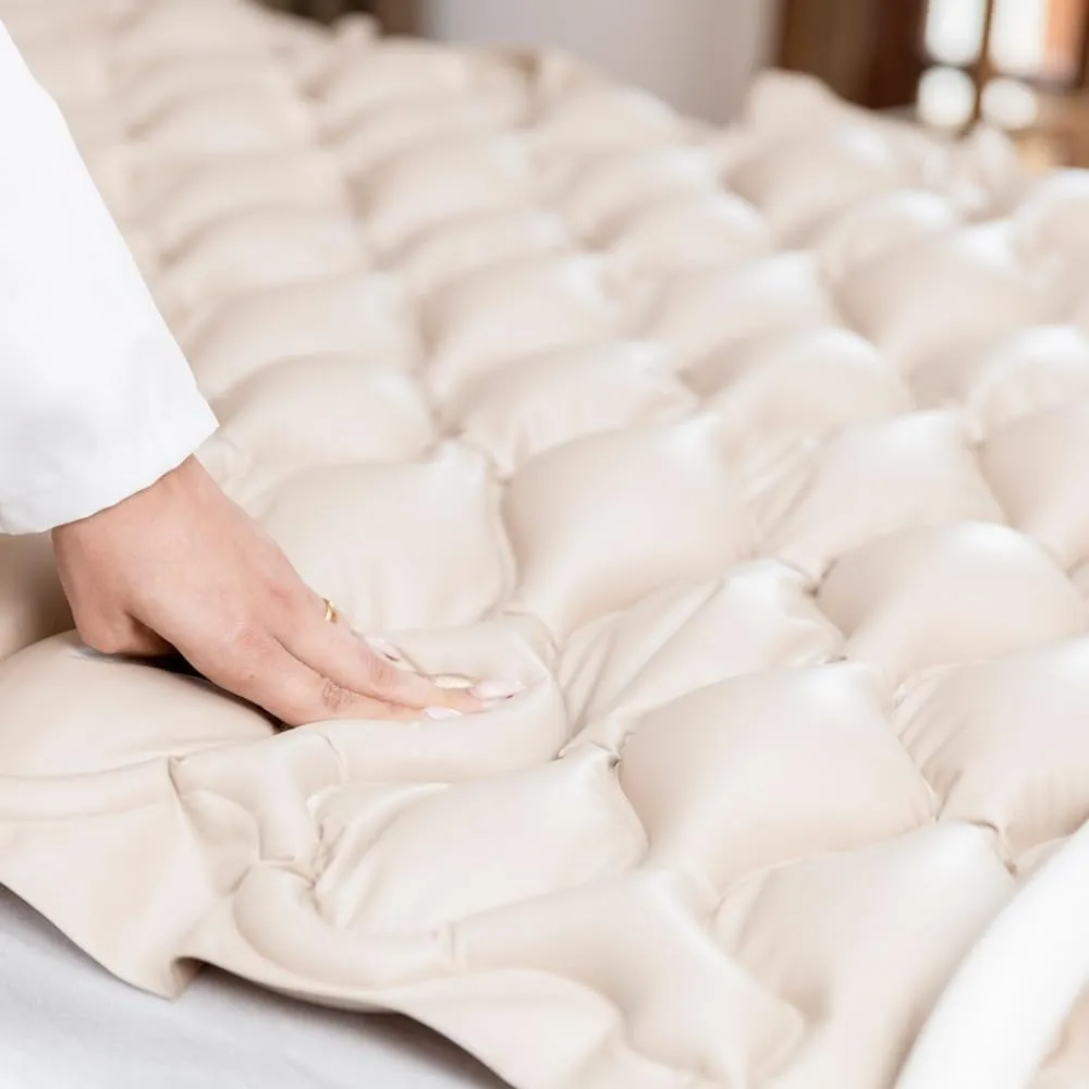 Celdas de aire que se inflan y desinflan cada 9.6 minutos, aliviando la presión en zonas críticas y mejorando la circulación sanguínea.