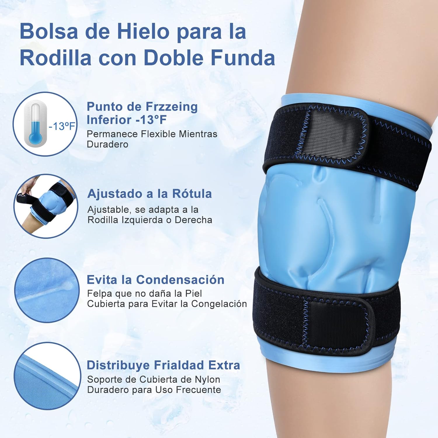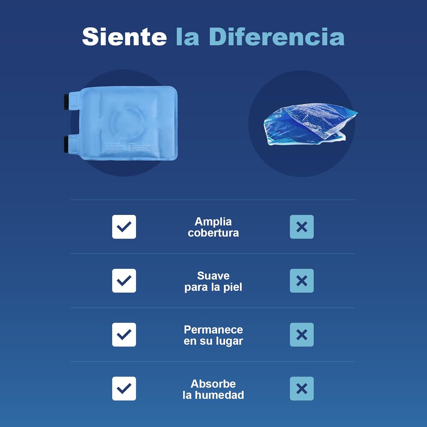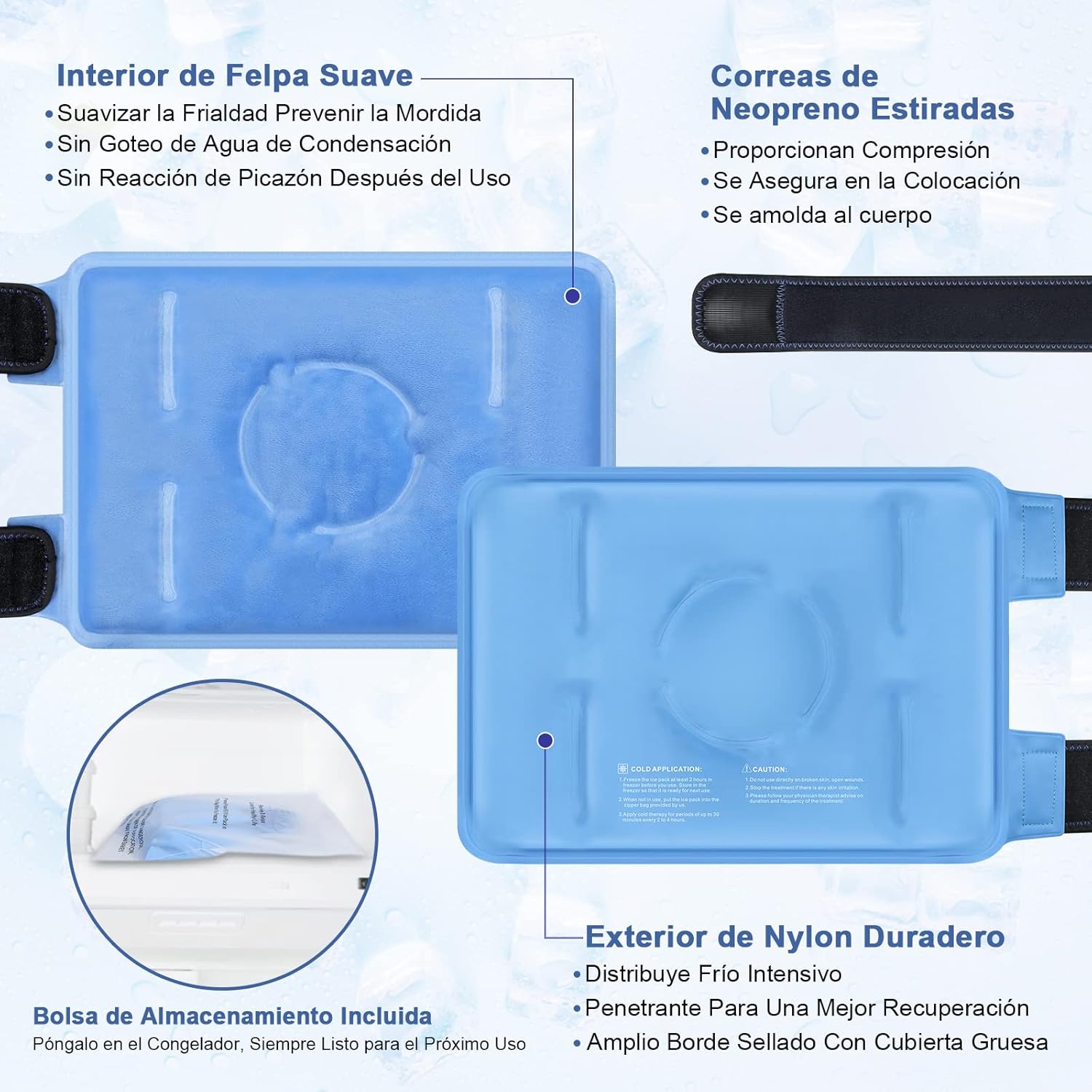 Su gel anticongelante flexible, cubierta de felpa suave y correas ajustables permiten una terapia de frío cómoda, segura y sin manos, ideal para lesiones deportivas, artritis, golpes o recuperación postoperatoria.
