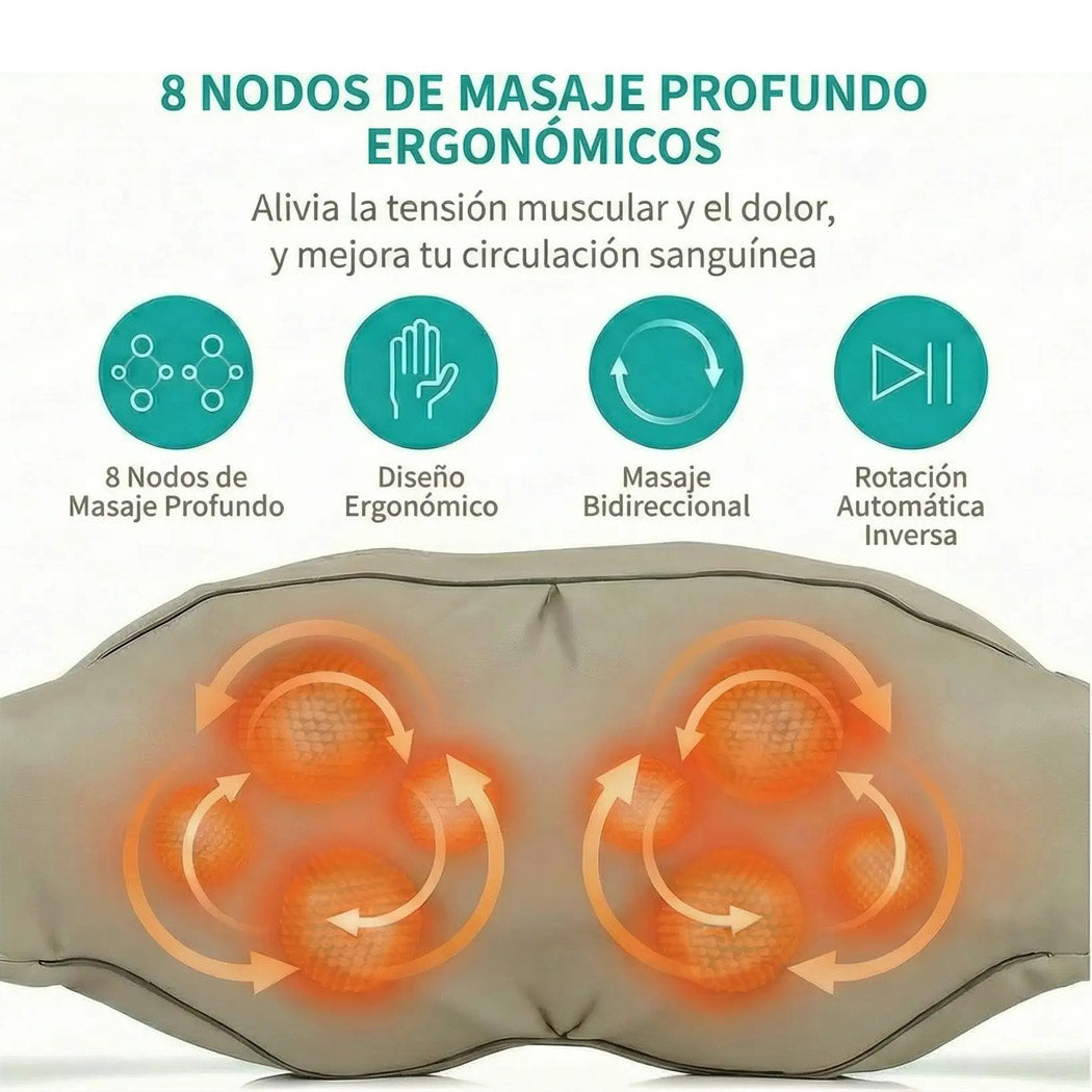 ✔️ 8 nodos de masaje profundo tipo Shiatsu