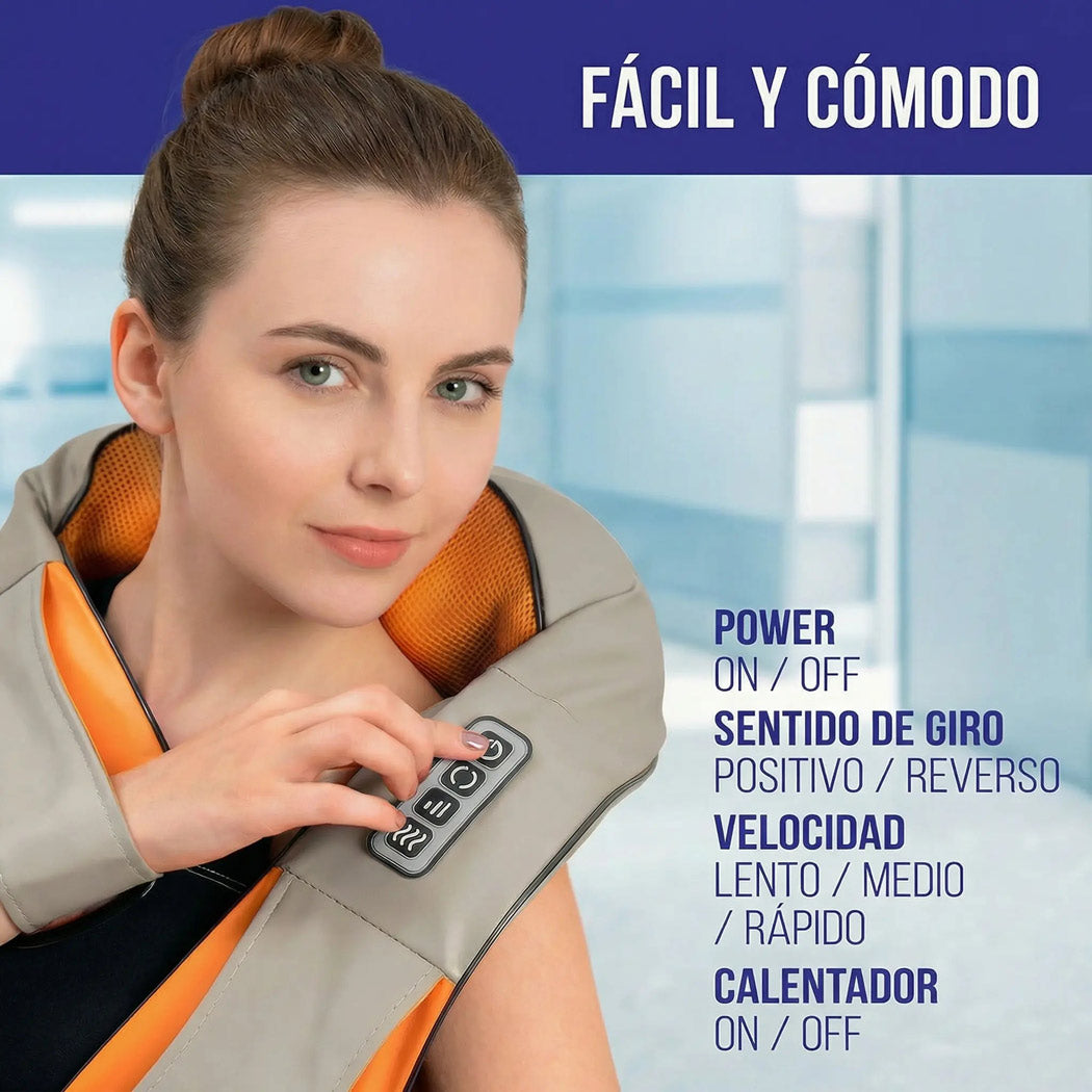 Ajusta la intensidad según tu preferencia, cambia el sentido del masaje con un solo botón y activa el calor relajante para potenciar la sensación de alivio.